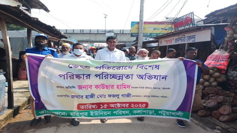 বুধবার (১৫ অক্টোবর) সকাল ১০টায় ডেঙ্গু প্রতিরোধে জনসচেতনতা বৃদ্ধির লক্ষ্যে মহিপুরে থানা শহরের প্রধান প্রধান সড়ক প্রদক্ষিণ করে একটি বর্ণাঢ্য র্যালি বের করা হয়। র্যালিতে নেতৃত্ব দেন মহিপুর ইউনিয়ন পরিষদের চেয়ারম্যান হাজী মোঃ ফজলু গাজী। এতে কলাপাড়া উপজেলার সরকারি কর্মকর্তা,বাজারের ব্যবসায়ী, জনপ্রতিনিধি, সিপিপি স্বেচ্ছাসেবক, শিক্ষার্থী ও বিভিন্ন সামাজিক সংগঠনের প্রতিনিধিরা অংশ নেয়।