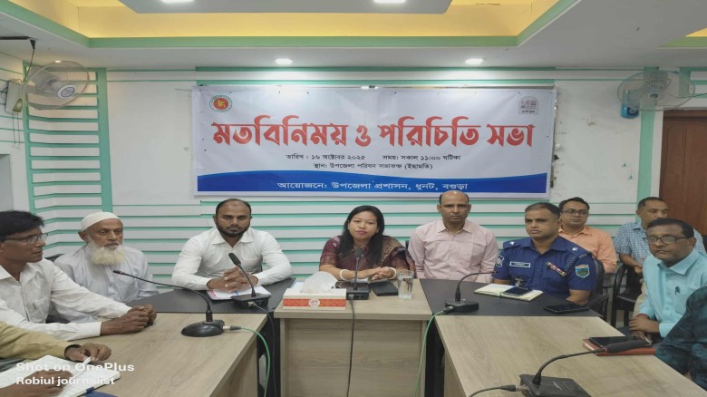 বগুড়ার ধুনট উপজেলায় নবাগত উপজেলা নির্বাহী কর্মকর্তা প্রীতিলতা বর্মনের সঙ্গে জনপ্রতিনিধি, সরকারি কর্মকর্তা, গণমাধ্যমকর্মী ও সুধীজনদের মতবিনিময় ও পরিচিতি সভা অনুষ্ঠিত হয়েছে।